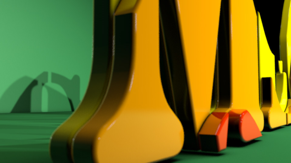 A variety of still frames from the animation, showcasing the "layered text" technique